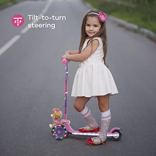 Paw Patrol Skye Kick Scooter for Kids, Self-Balancing 3 Wheeled Light Up Scooter with Extra Wide Anti-Slip Deck, Rear Brake, Lean to Steer, Lightweight Design, for Kids 3 and up, 75 LB Limit