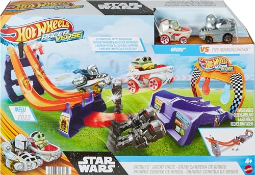 Hot Wheels Racerverse, Star Wars Track Set with Die-Cast Hot Wheels Racers Inspired by Star Wars: Grogu & The Mandolorian